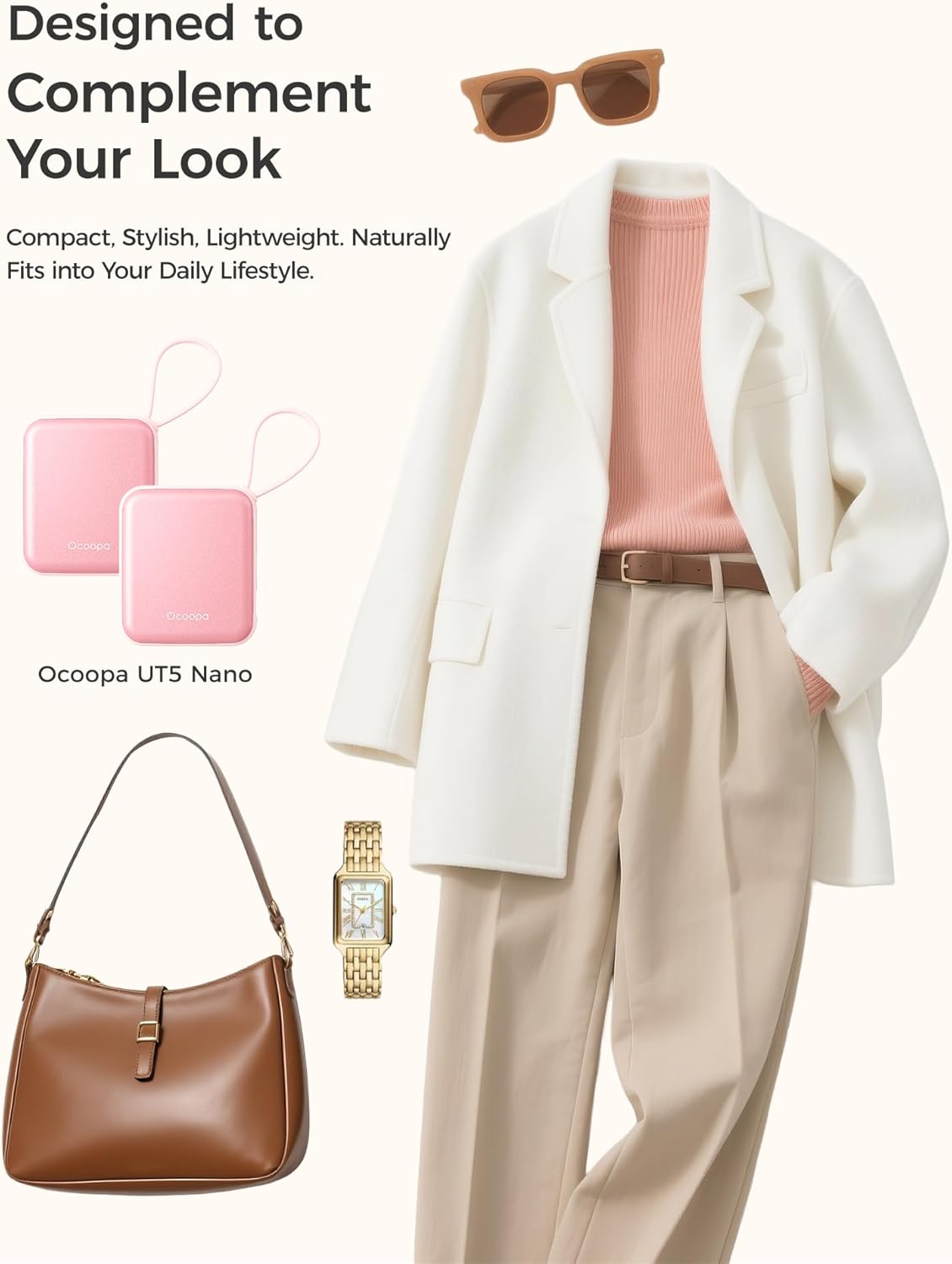- Ultra-Nano Size – Designed for Her Hands: This ultra-slim rechargeable hand warmer smaller than your palm, lighter than a lipstick. UT5 Nano fits perfectly in gloves, pockets—even wallets. Tailored for women who love warmth without the bulk.