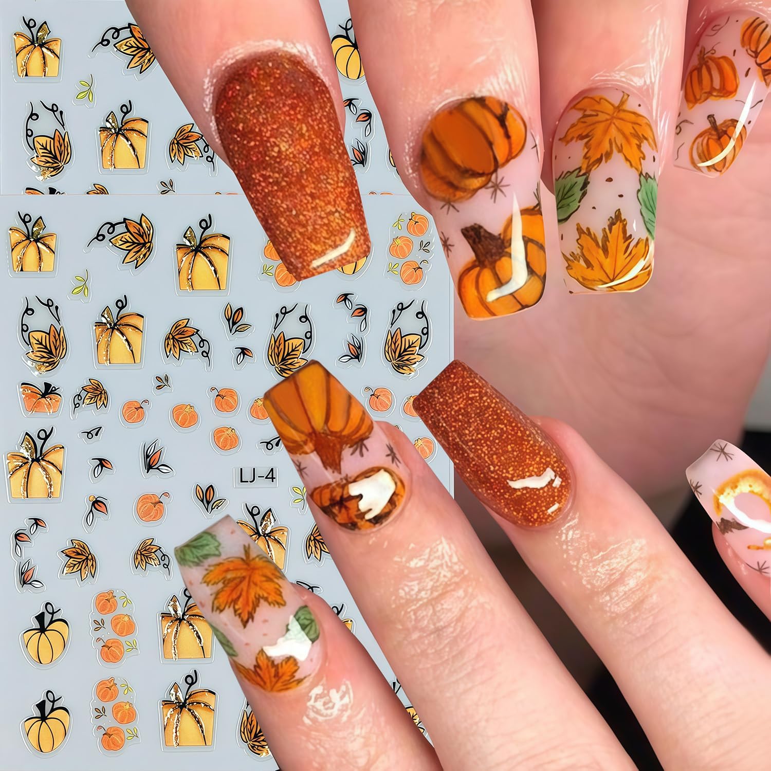 - Quantity: You will get 6 sheets of fall maple leaves nail art stickers, including cute maple leaves and pumpkin,leaf designs, not easy to fall off or fade, can easily create a variety of themed nail art, meet various nail art needs