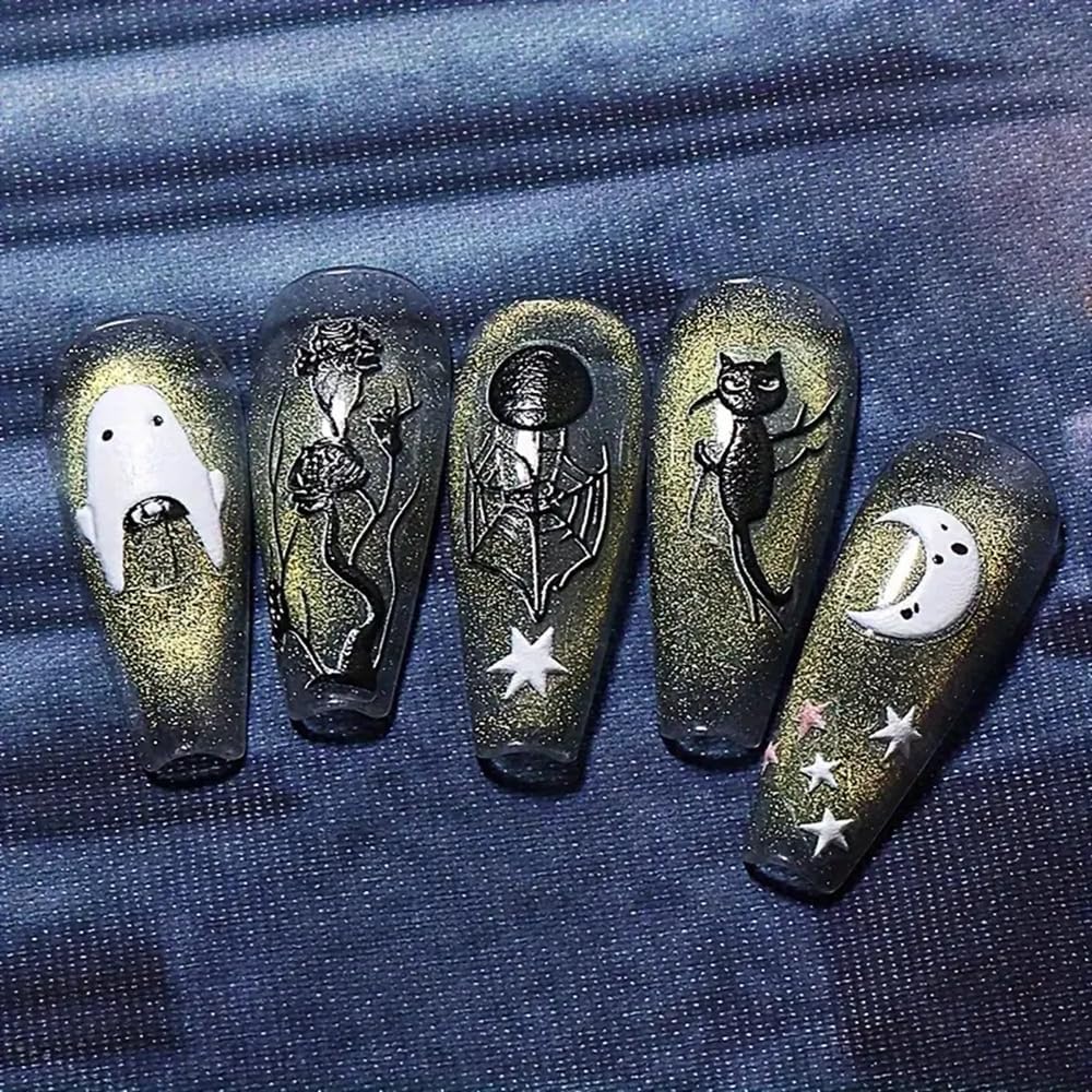 - [Halloween Nail Designs] Halloween nail art stickers have different patterns such as ghost, crow,rose, cat,bat,skull,spider, star, moon etc. which can provide you with a variety of choices and let you use your rich imagination to nail DIY. At affordable prices, suitable for girls women fashion styles.