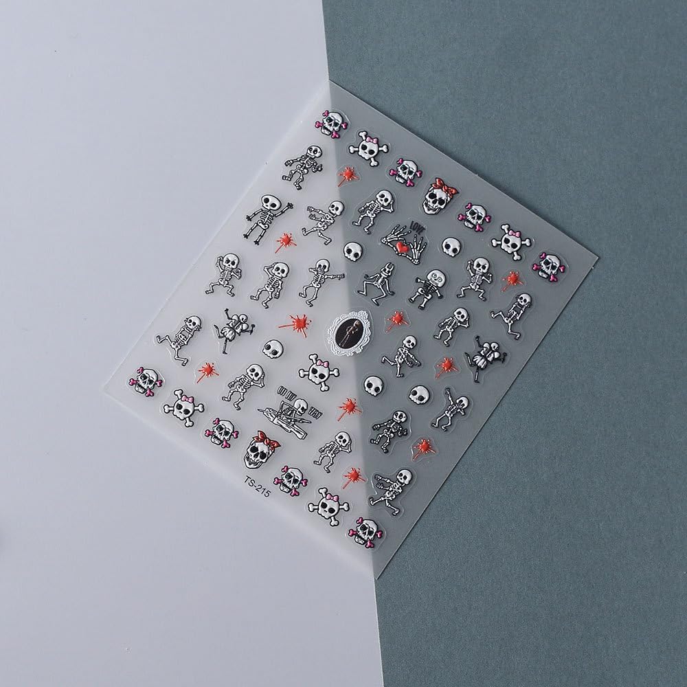 Halloween Nail Art Stickers 5D Embossed Skull Blood Skeleton Nail Stickers, Self-Adhesive Durable Nail Art Decals for Women Girls, Nail Wraps Decoration Manicure for DIY Acrylic Nail Accessories