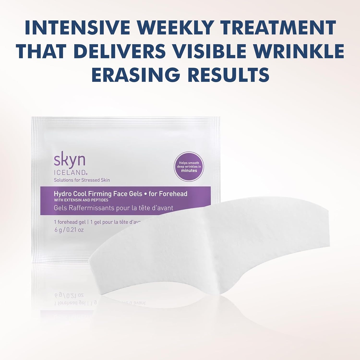 Skyn ICELAND Hydro Cool Firming Forehead Patches, 10 Minute Smoothing Treatment with Peptides and Hyaluronic Acid, All Skin Types, 4 Patches
