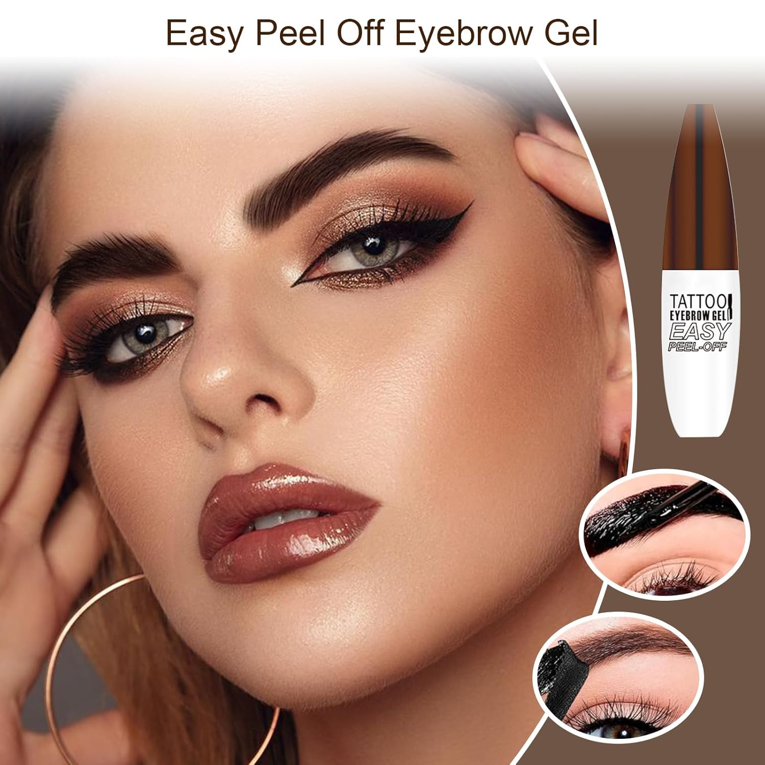 Easy Peel Off Eyebrow Gel Kit, Light Brown Tattoo Brow Gel, Long-lasting Waterproof and Transfer for Women to Achieve Natural Fuller Brows, Suitable for All Skin Types